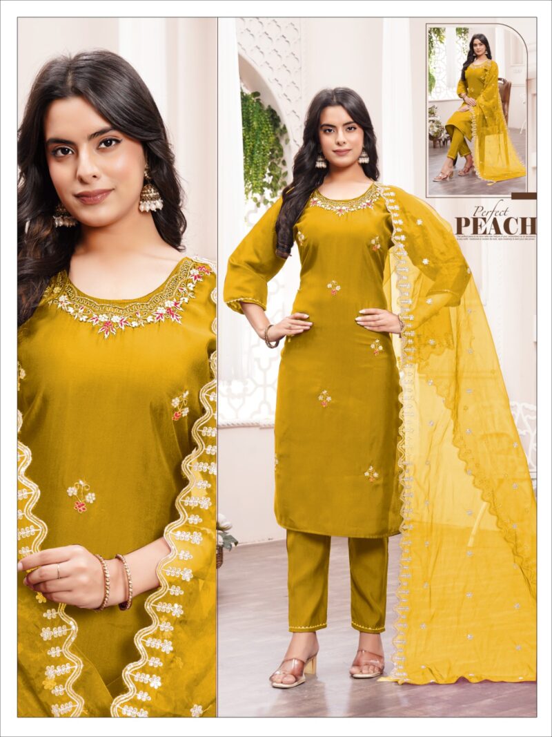 Designer 3-piece Kurti set with intricate embroidery and matching dupatta.